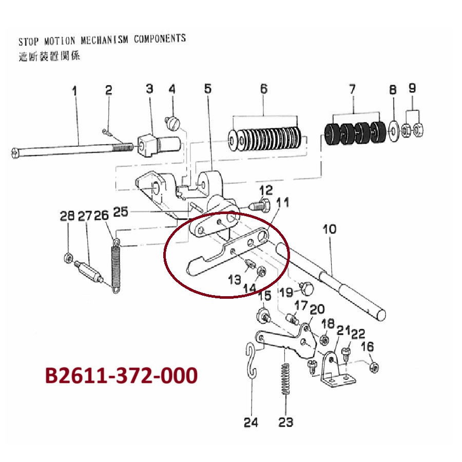 Juki MB-372, Juki MB-373-as gombfelvarró géphez megállító nyomókar. #B-2611-372-000; #B2611-372-000 Gyártó:Yao Han, Taiwan
